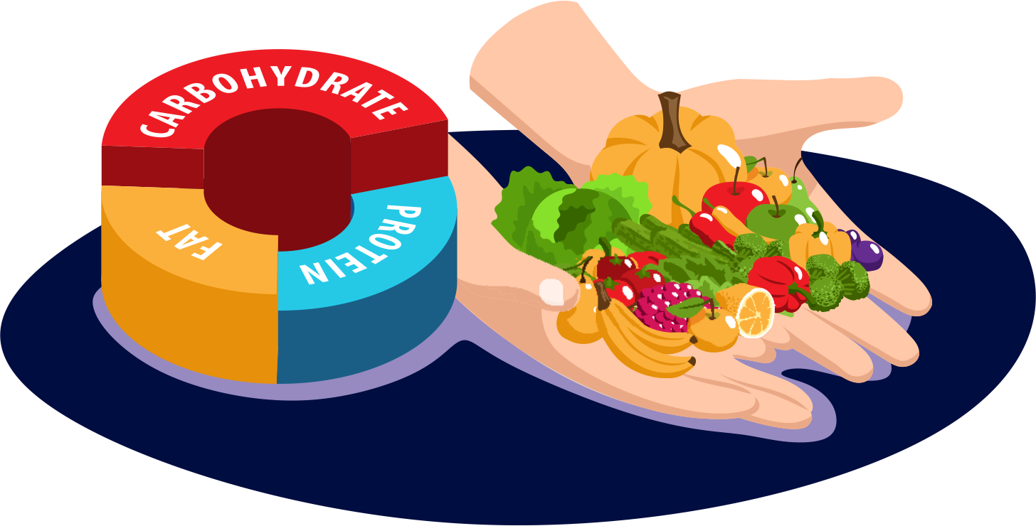 Pilihlah makanan yang mengandung karbohidrat kompleks, seperti nasi, umbi-umbian (kentang, singkong), dan jagung. Batasi konsumsi karbohidrat sederhana seperti gula pasir, permen, sirup, dan minuman manis. Dianjurkan untuk mengonsumsi 3-5 porsi buah dan sayur setiap hari. Hindari atau kurangi makanan cepat saji (junk food) seperti gorengan, makanan tinggi gula, serta camilan kemasan